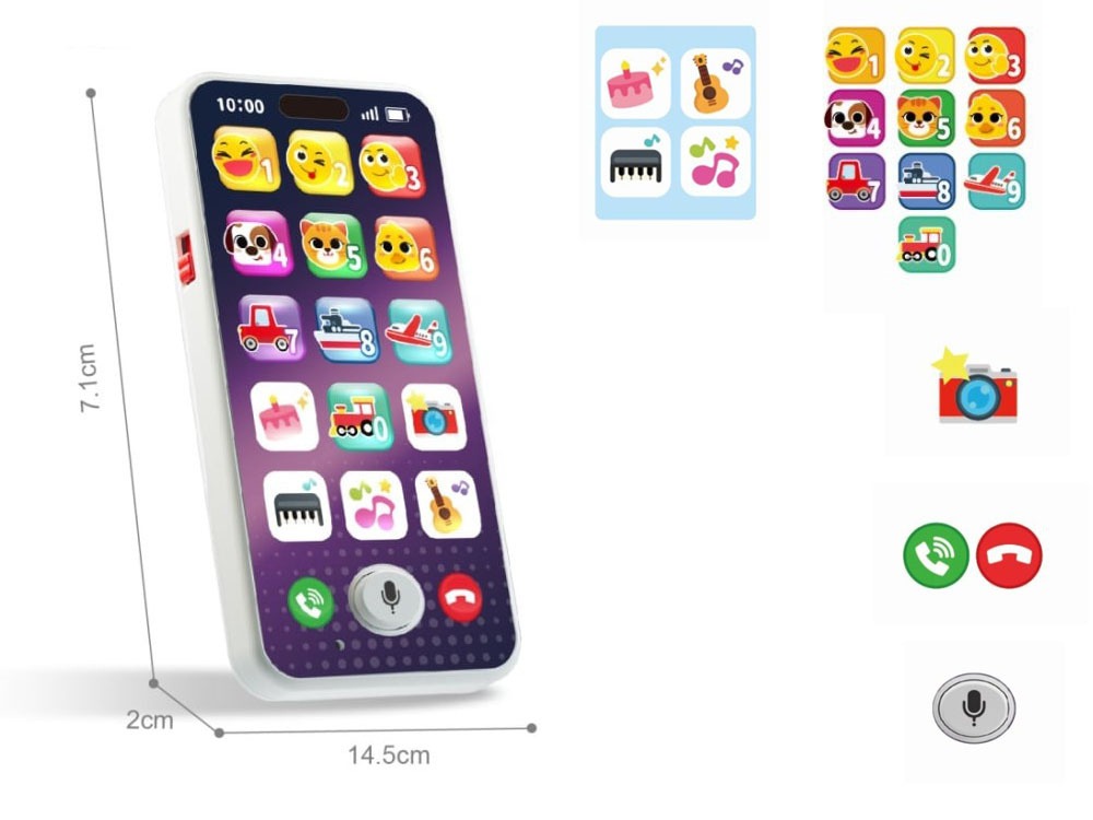 Mažylis gauna savo telefoną, kuris dažnai veiksmingai atitraukia jo dėmesį nuo suaugusiųjų įrenginių. Tuo pačiu metu jis gauna žaislą, kuris ne tik linksmina, bet ir moko bei palaiko klausos, kalbos ir koordinacijos vystymąsi.