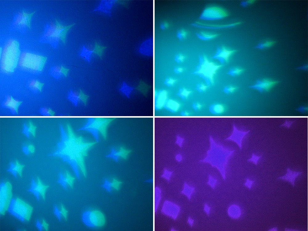 • Pro skylutes pilve projektorius rodo žvaigždes, mėnulį, planetas ir raketas