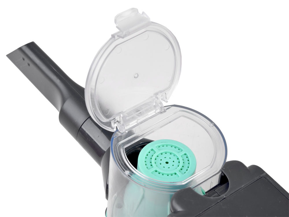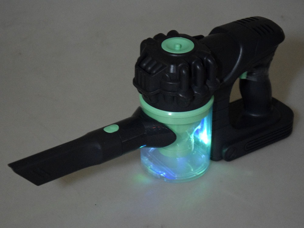 Rinkinys pagamintas iš elegantiškos pilkai žalios spalvos plastiko. Žaislas turi du keičiamus antgalius ir veikimo metu šviečia spalvinga šviesa. Dulkių surinktuvas atsidaro, todėl surinktas šiukšles lengva ištuštinti.