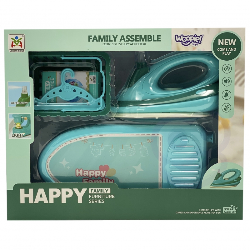 Komplekte yra lygintuvas, lyginimo lenta, skalbinių krepšelis, dvi pakabos ir skalbimo miltelių pakuotė. Lygintuvas yra saugus žaislas vaikams, neįkaista. Jame yra daug funkcijų , kurios paįvairins linksmybes: šviečianti LED lempa ir garso efektai . Zaislas veikia ir nepripildydamas vandens. Tai puikus rinkinys vaikams, kurie mėgsta mėgdžioti savo tėvus kasdienėje veikloje.