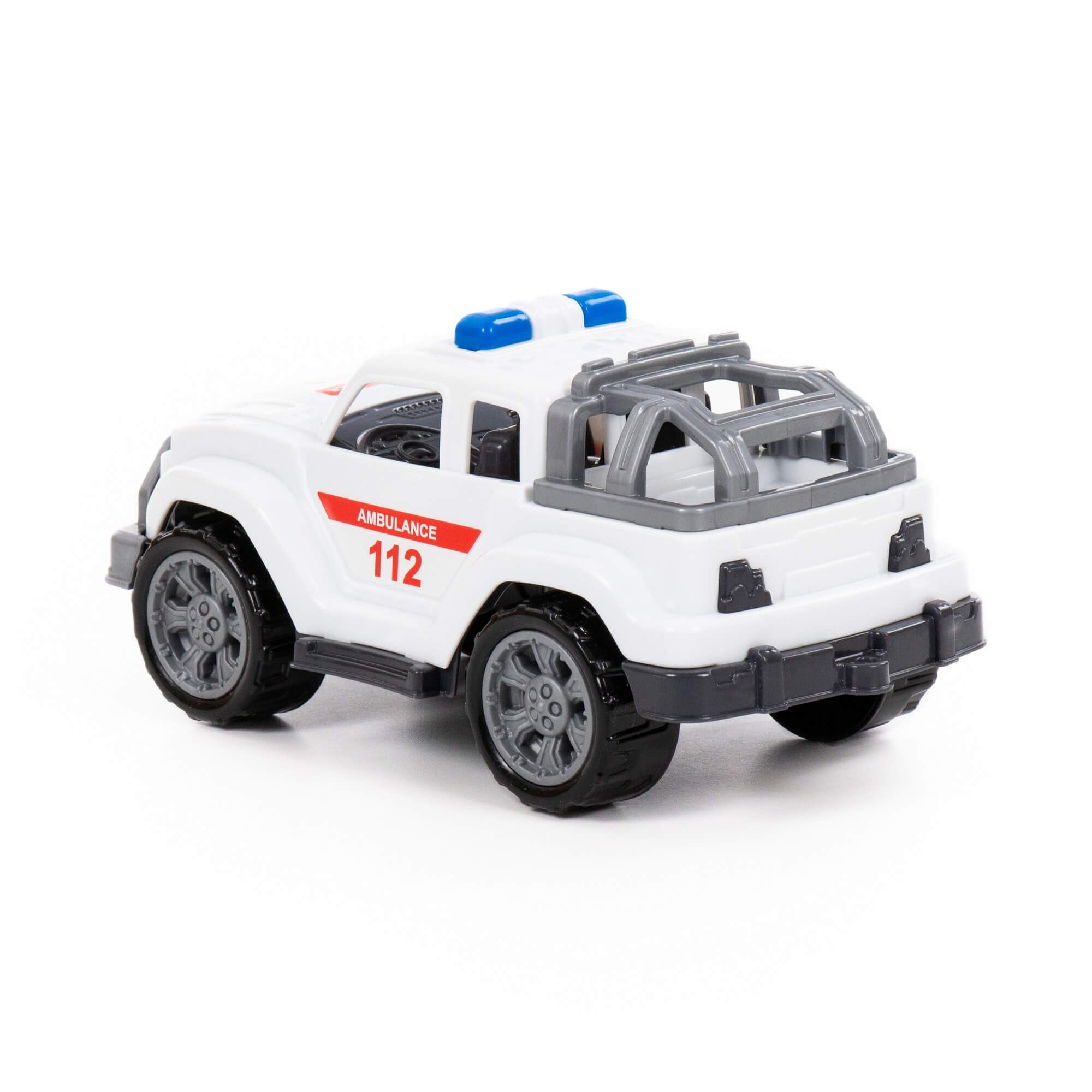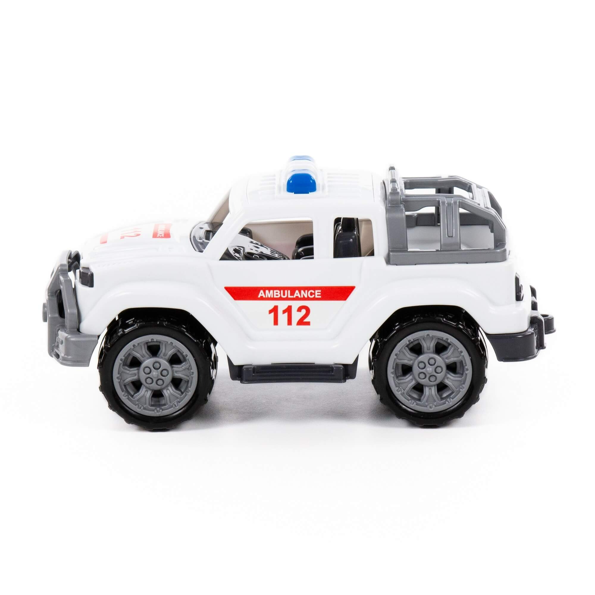 Plastikinis baltas Legionaire automobilis – mini greitosios pagalbos automobilis.