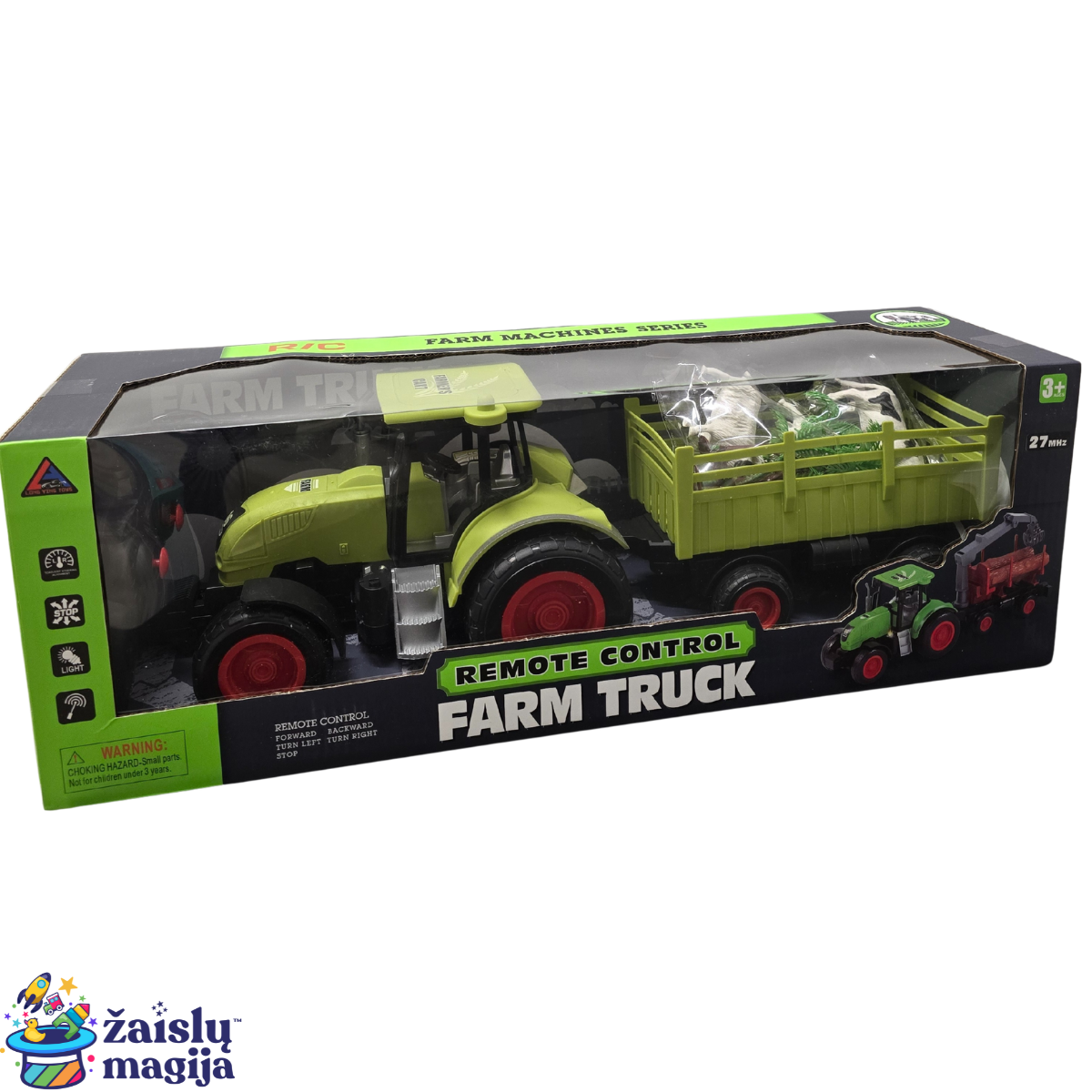Šis nuotoliniu būdu valdomas traktorius su priekaba leis vaikams pasijusti tikrais ūkio šeimininkais. Realistiškas dizainas, ryškios spalvos ir lengvai valdoma pultu transporto priemonė – smagi ir lavinanti pramoga tiek berniukams, tiek mergaitėms.